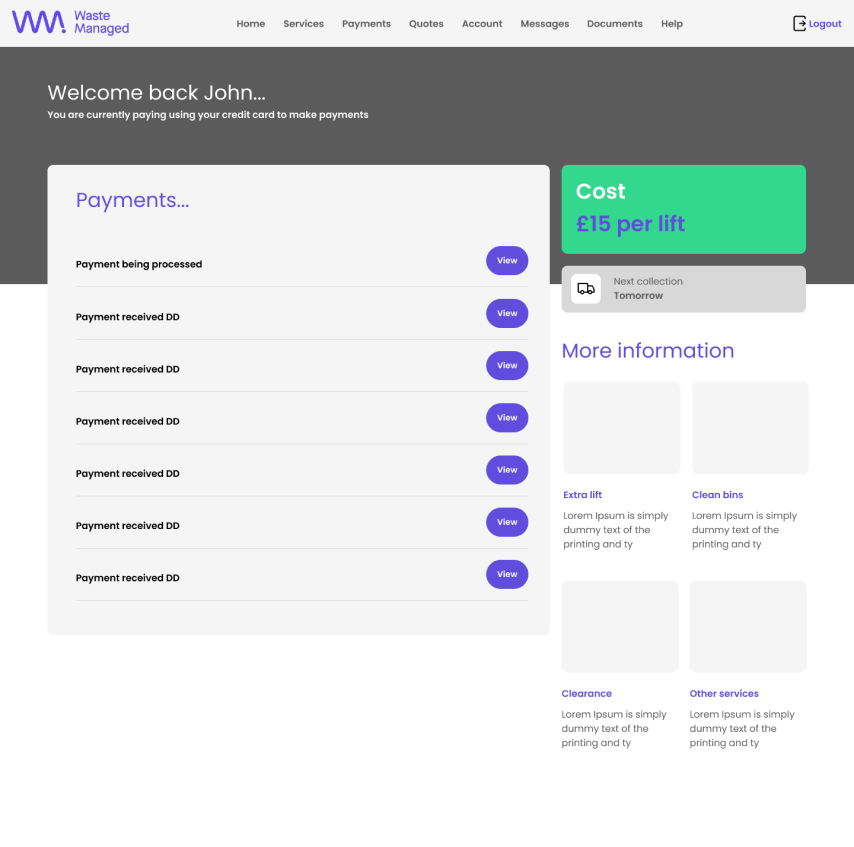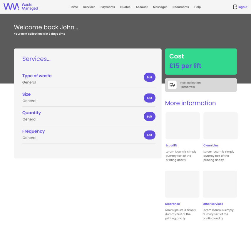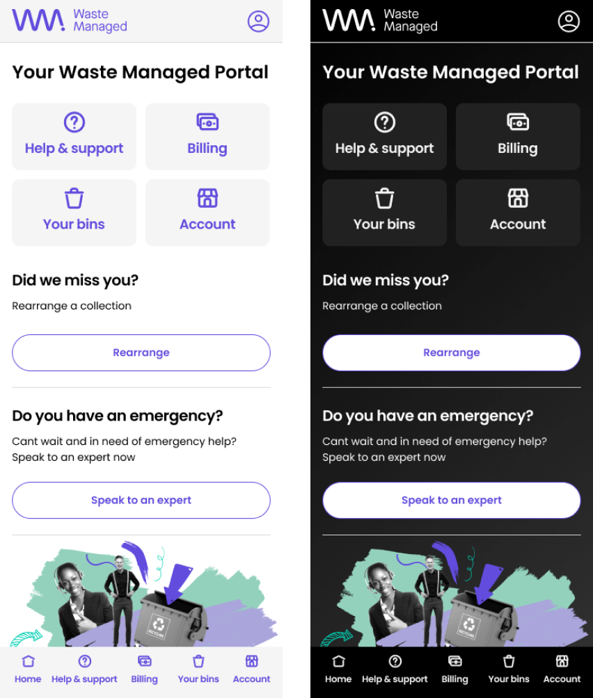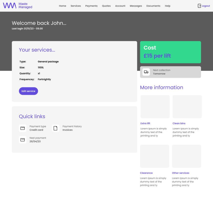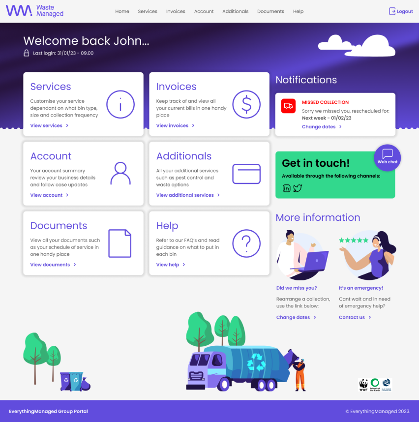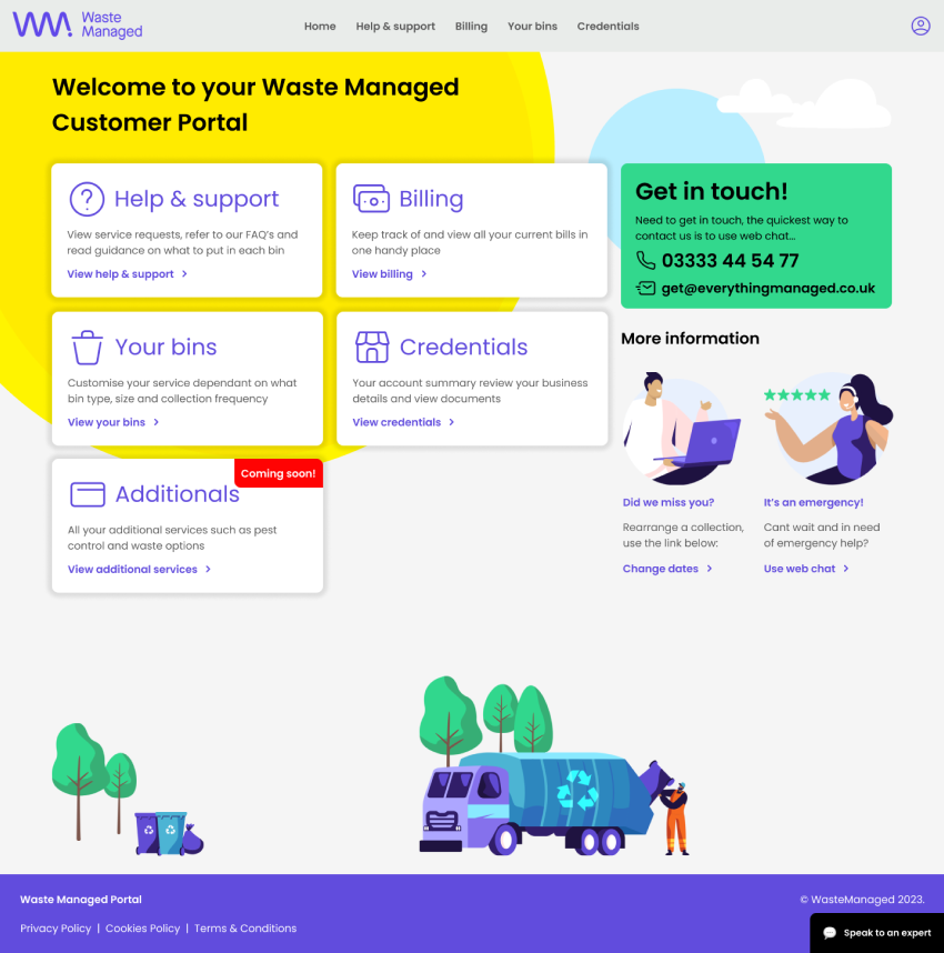 Working autonomously & as part of a remote first agile software development team. Creating from scratch a new customer facing portal for waste management in the enterprise space. Responsible for stakeholder management; research including liaising with customer service rep; competitor product review with BA then creating from scratch a new design system in Figma, creating wires, carrying out user testing with key members of EMG staff. Alignment of UI, accessibility, carrying branding and creating a data heavy broker facing portal including charts & data tables for immersive UX.
