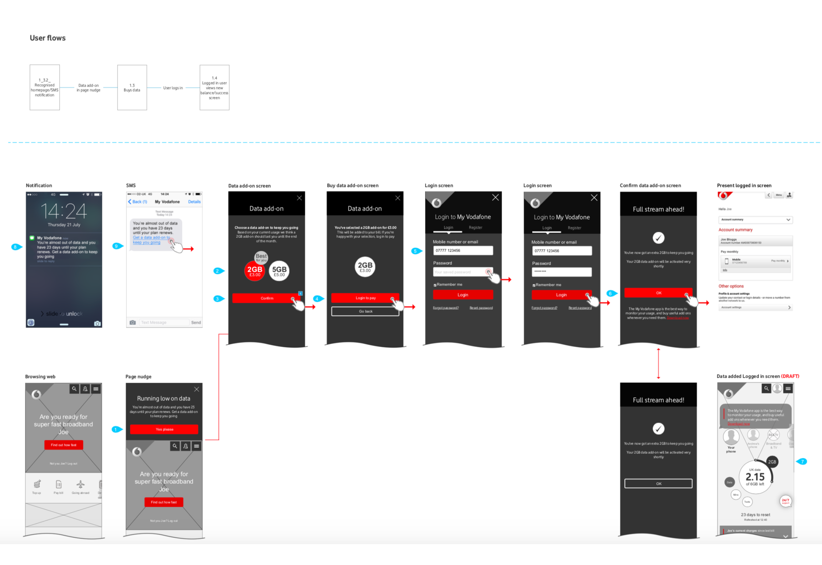 Part of the Web Simplification 2 (WS2) team concentrating on key journeys for the new Vodafone B2C website. Mobile first responsive framework, creating new flows for: top ups, data add-ons, roaming, recommitment, promotions & device diagnostics… In line with key stakeholders requirements, iterations & working closely with BA’s & Visual Designers using Jira, Axure & Sketch. Creating wireframes, prototypes & annotated UX specs for both the Visual designers & a Front end development team.